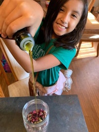 Our first young herbalist in training, 4th grade student Jaz, crafted an infusion of calendula & olive to soothe growing pains!